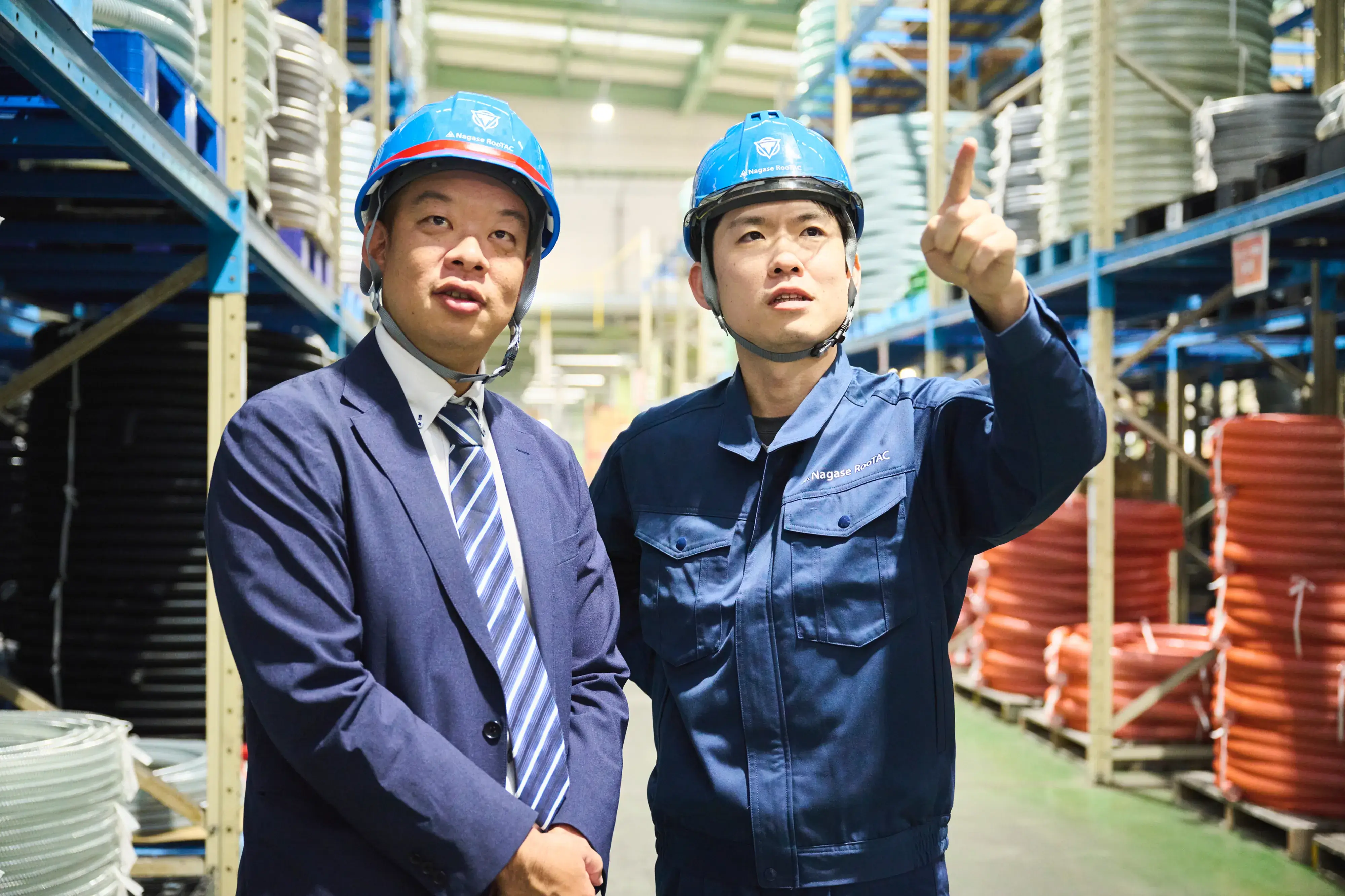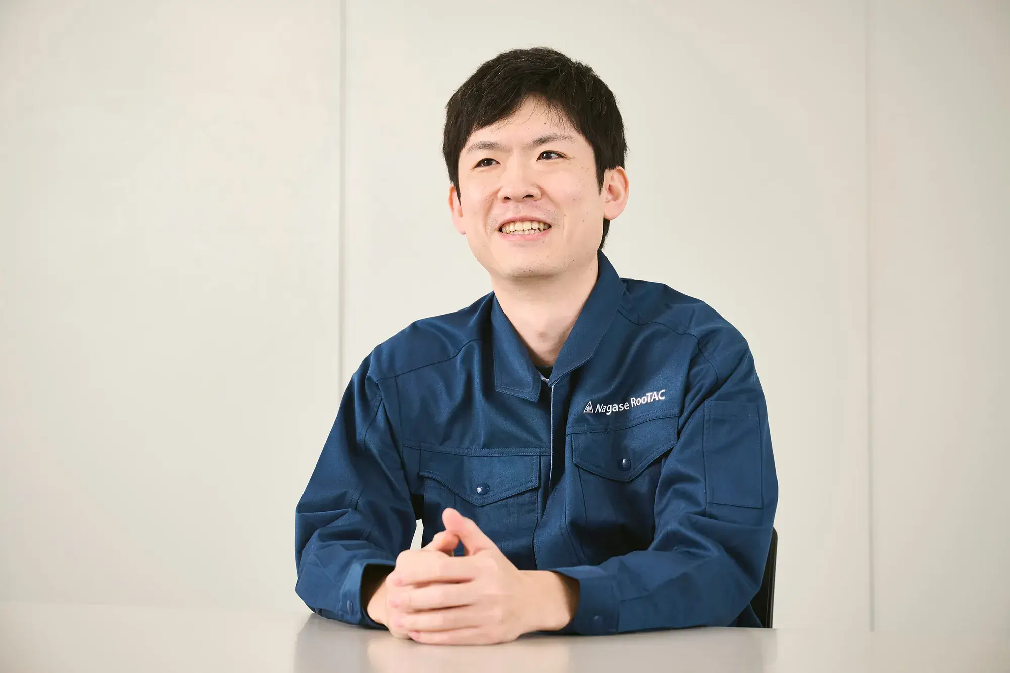 大学では化学系の研究室で高分子合成を学び、素材と化学の世界に興味を持っていました。就職活動では、化学素材を扱うメーカーを中心に幅広く探していた中で、ナガセルータックのパイプやホースという身近でイメージしやすい製品でありながら、社会インフラなど