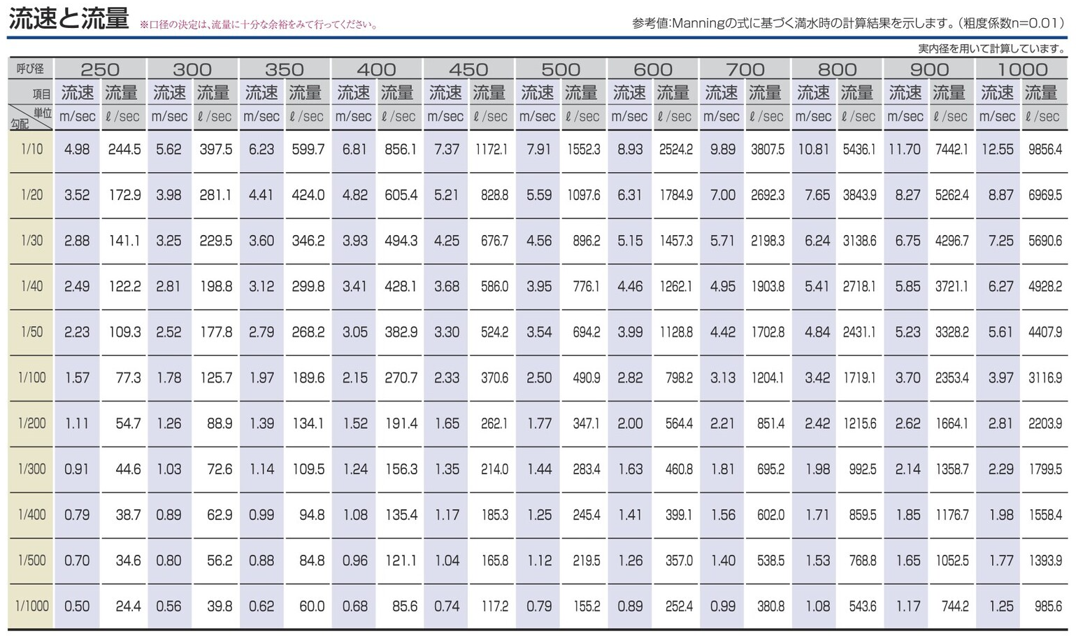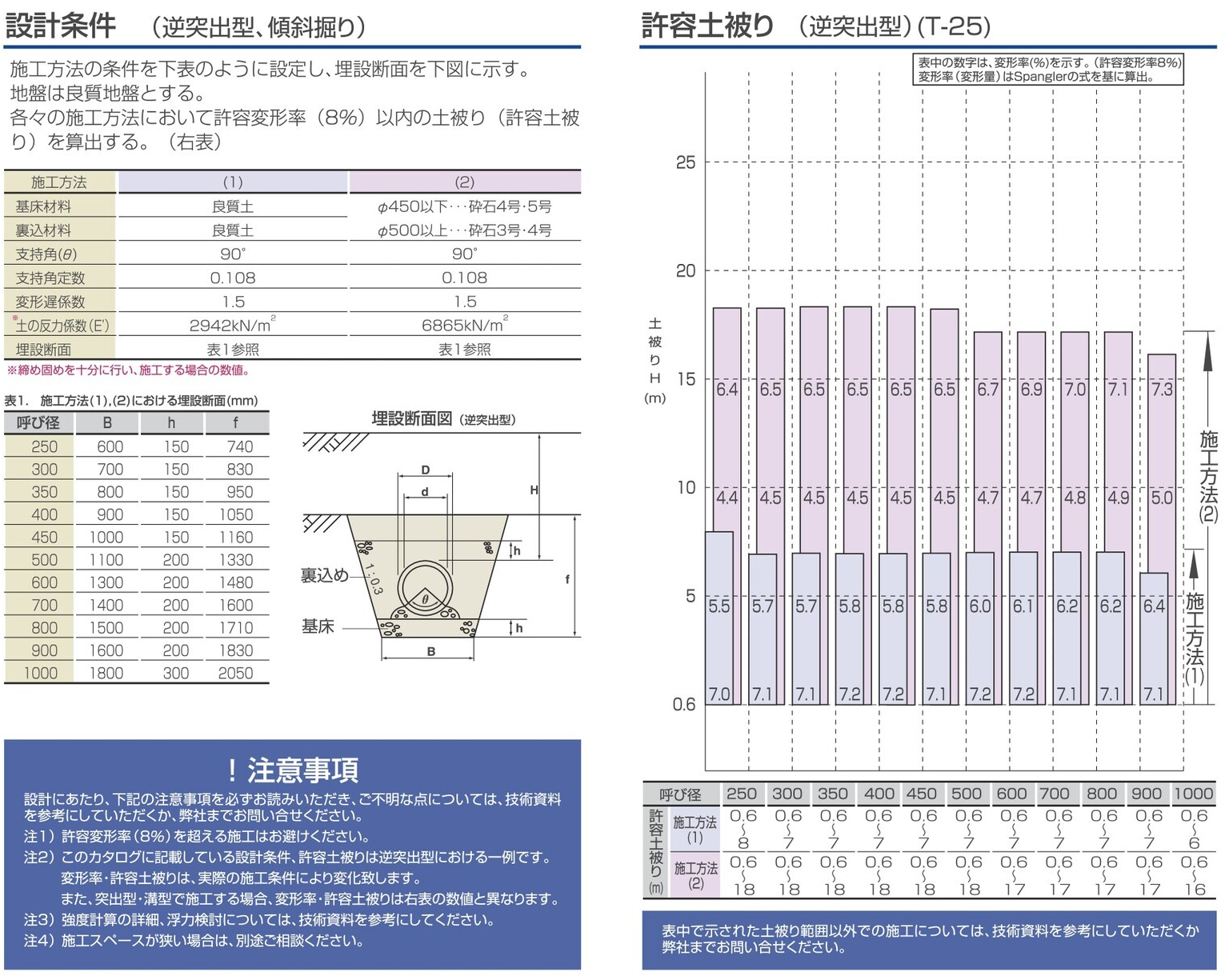 - 設計条件、許容土被り、流速と流量、耐薬品性、材料物性などはカタログをご参照ください。