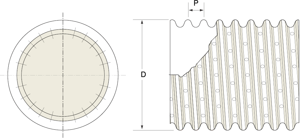 - 内面凹凸のシングル管で、可とう性に優れます。また、軽量で施工性が良い土木用暗きょ排水管です。