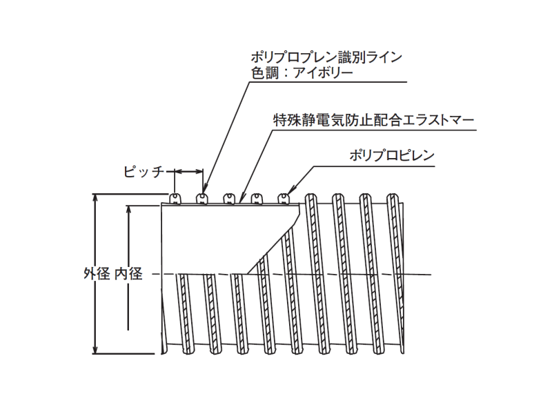 - 優れた静電気防止効果により食品粉体輸送に最適。