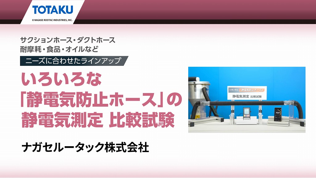 - 食品用機械の送排気、ダクト、静電気対策排気、粉体・粒体、設備・機器類の送排気、工場設備の送排気、低発塵性が必要な送排気(クリーンルームなど)、集塵、粉体・粒体の食品の輸送、ドレン用途(伝い流れる程度)、低発塵が必要な配管