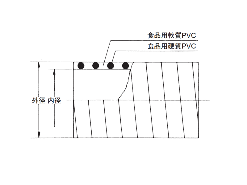 - 内外面フラット(平滑)のサクション・デリバリーホース。