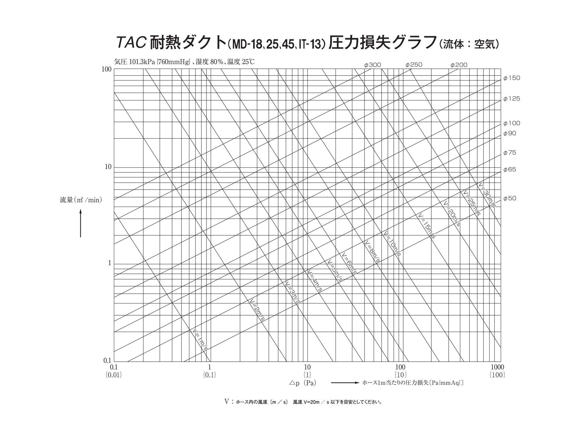 - (ダクトホース許容減圧力は、ホース直管状態で両端固定時の数値です)