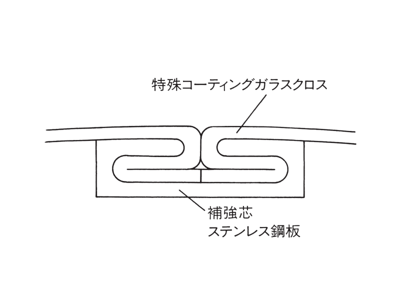 - 特殊コーティングガラスクロス(芯材はSUS304鋼板)のダクトホース。