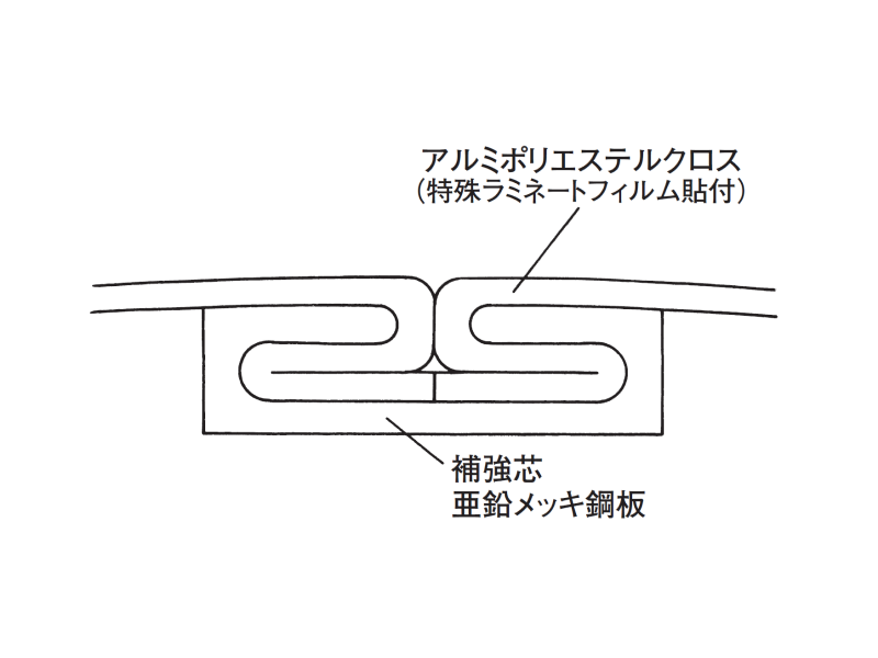 - 材料は特殊ラミネートフィルム貼付けアルミポリエステルクロス(芯材は亜鉛メッキ鋼板)のダクトホース。