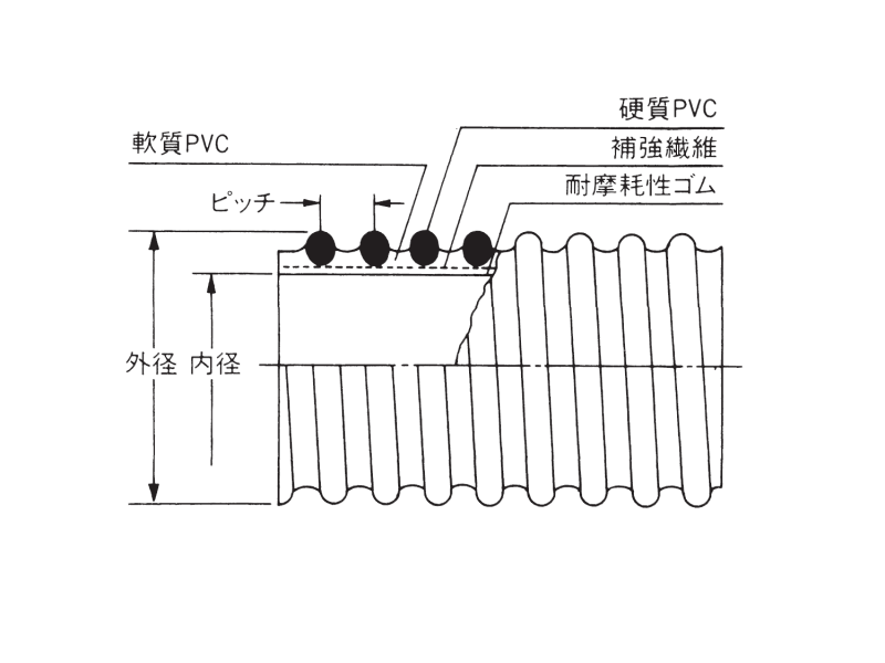 - 内層ゴムに耐摩耗性ゴムを採用しているため、耐摩耗性に優れています。