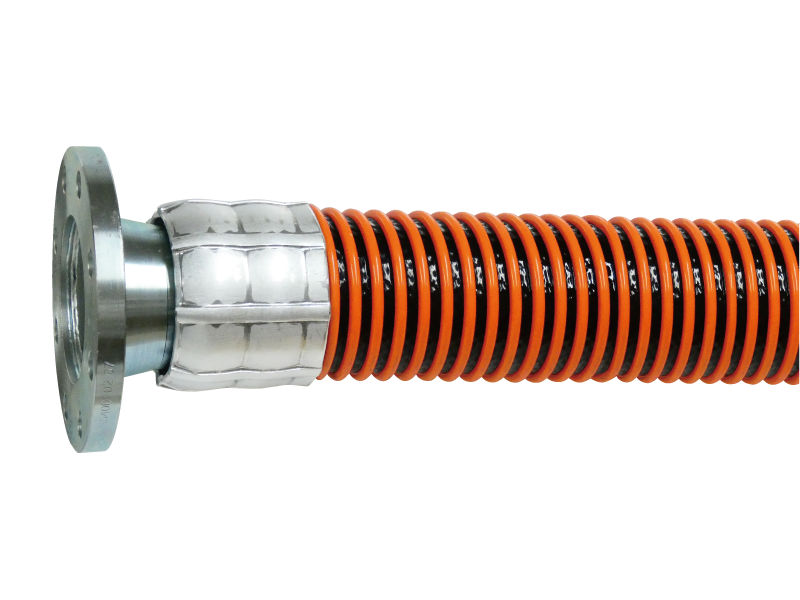 高耐圧・耐摩用サクション・デリバリーホースのフラッグシップモデル。泥水の吸圧送のような土木工事の用途に適しています。また、現場で金具を取り付けできるオリジナル金具 しめTAC をご用意しています。