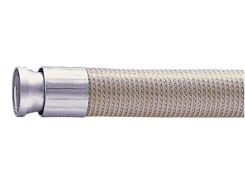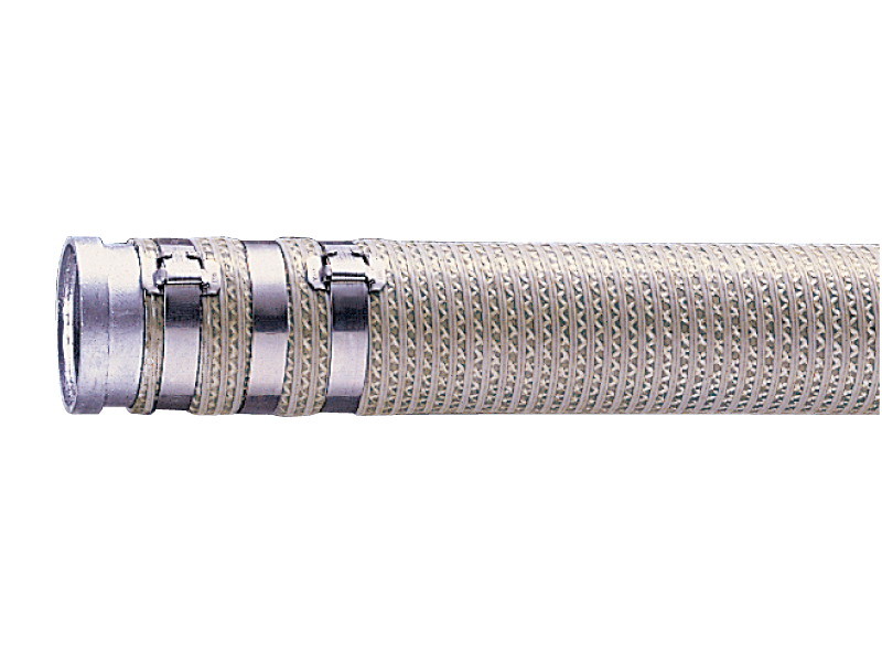 オール樹脂タイプの耐圧・耐摩耗用サクション・デリバリーホースです。外面が硬質塩ビで保護されているため、外面摩耗に強く、補強糸の出にくい構造です。