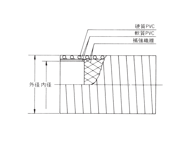 - モルタル圧送の中間・先端用ホースです。オール樹脂製で外圧に強く、偏平・座屈しにくい構造です。