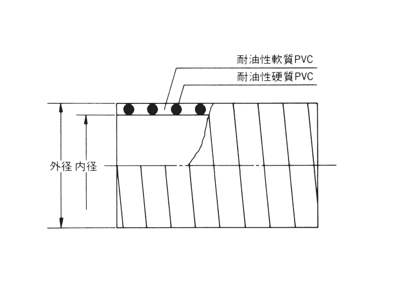 オール樹脂の耐油用サクション・デリバリーホースです。特殊耐油配合樹脂を施した設計で、油類の輸送に適しています。