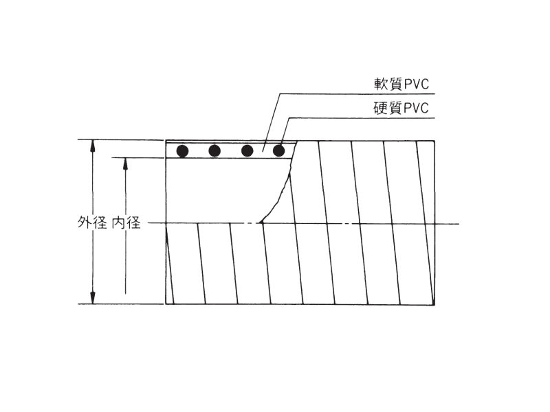 - 衛生車専用サクション・デリバリーホース。塩ビ製。ホース外面の耐摩耗性を考慮した設計で、耐久性に優れます。
