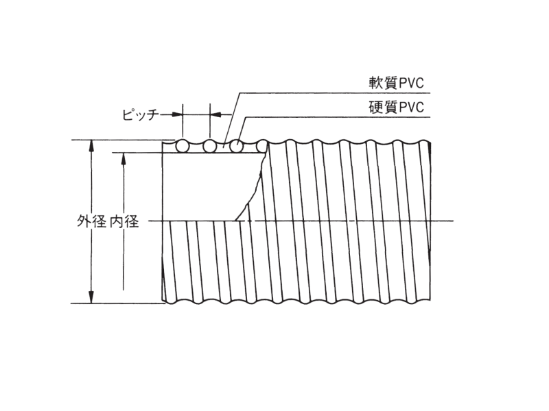| 呼び径 mm  | 呼び径 inch  | 内径 mm  | 外径 mm  | ピッチ mm  | 参考質量 g/m  | 許容圧力 (常温) MPa  | 許容圧力 (常温) kgf/㎠  | 許容曲げ 半径 mm  |
