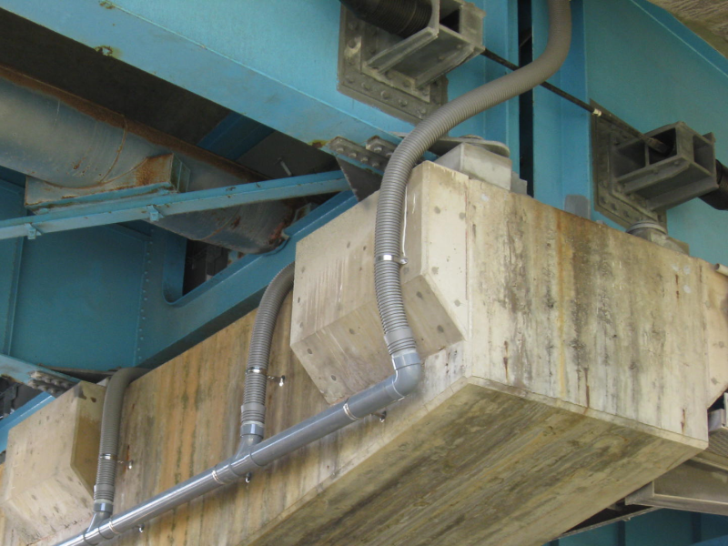 - 曲げ配管が可能 フレキシブルに曲がるので橋の側面や下側の様々な曲がり配管に最適です。施工の省力化に貢献します。なお、配管の際は逆勾配にならないようご注意ください。